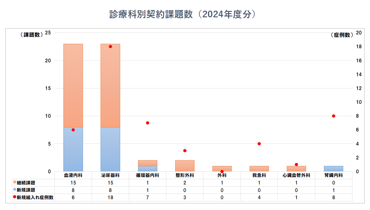 当院では2006年7月に最初の国際共同治験(試験)を受託し、2024年3月31日現在、下表のとおり国際共同治験(試験)を受託しております。